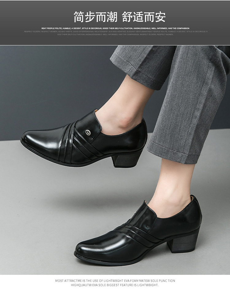 Men's Business Formal High-Heeled Leather Shoes, Export Quality